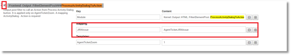 2. From the Admin menu, choose Sysconfig > EriZone Core > OutputFilter, then enable the output filter Frontend::Output::FilterElementPost###ProcessActivityDialogToAction.