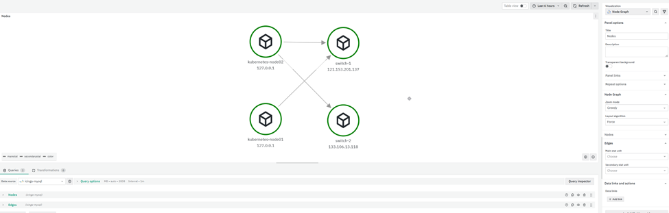 Among the several plugins that Grafana provides is Node Graph, a useful plugin for visualizing elements and relationships between them. This plugin, as described in the article: https://grafana.com/docs/grafana/latest/panels-visualizations/visualizations/node-graph/ , can be used to represent:
