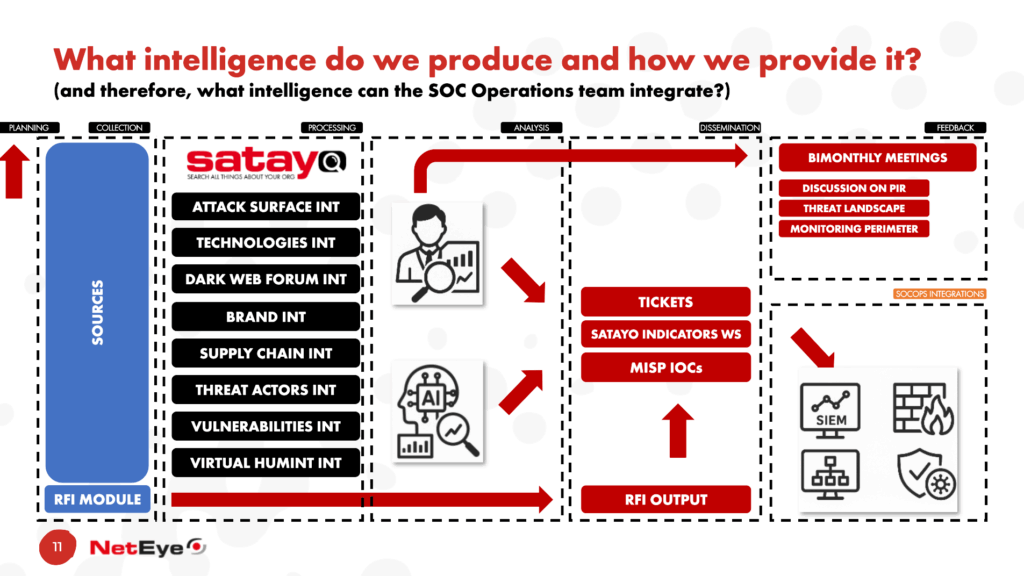 • Threat Actors Intelligence the profiling and tracking of threat groups and individuals – including their motivations, capabilities, infrastructure, and tactics – to anticipate their actions and enhance defensive readiness.