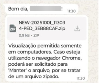 Malicious files were delivered to victims via WhatsApp Web, leveraging previously compromised accounts to impersonate trusted contacts. The attackers instructed recipients to open a malicious ZIP archive on their computers.