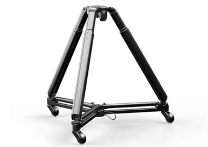 This one uses a C-Stand, which is much more robust than a tripod (steel rather than aluminum, so it can carry much more weight) and has caster wheels so you can roll it around on a floor. This type of setup is quite popular.