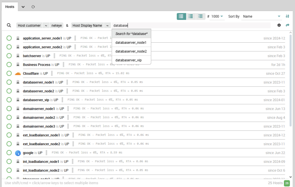 In the host and service lists, you can now choose your preferred level of detail using the view switcher — from compact overviews to fully detailed views, depending on your needs.