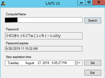 You can easily change the expiration date by entering it in the LAPS user interface and clicking “Set”.