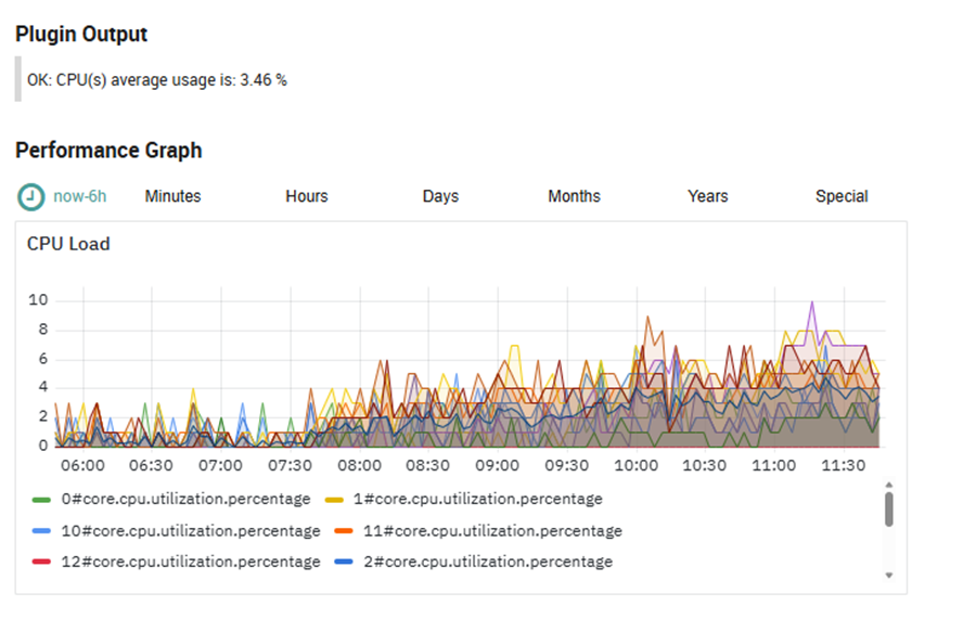 With the related metrics in Influx. Here, for example, is CPU load:
