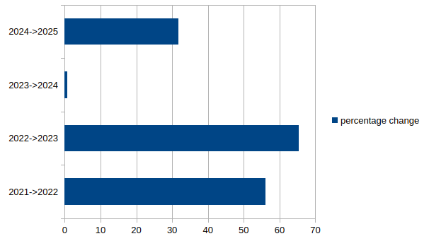 If we look at the percentage increase from 2025 to 2024, we see that the past year was marked by a sharp resurgence in double-extortion attacks. Indeed, if we consider the percentage changes from previous years, we see that while the increase in both 2022 and 2023 was significant, in 2024 we saw a stabilization of the previous year’s numbers.