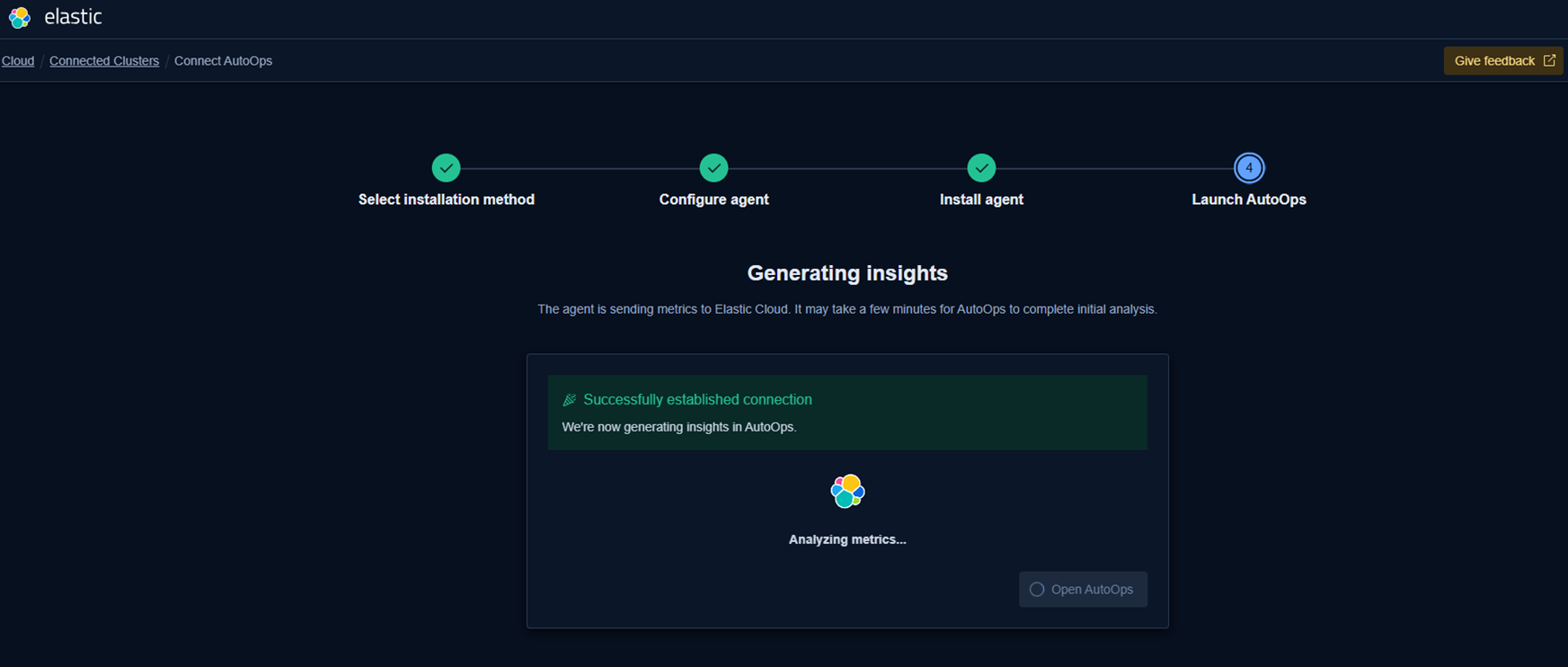 Elastic Agent collects telemetry from your cluster and sends it securely to Elastic Cloud. AutoOps currently supports Elasticsearch 7.17.x and above. [elastic.co]