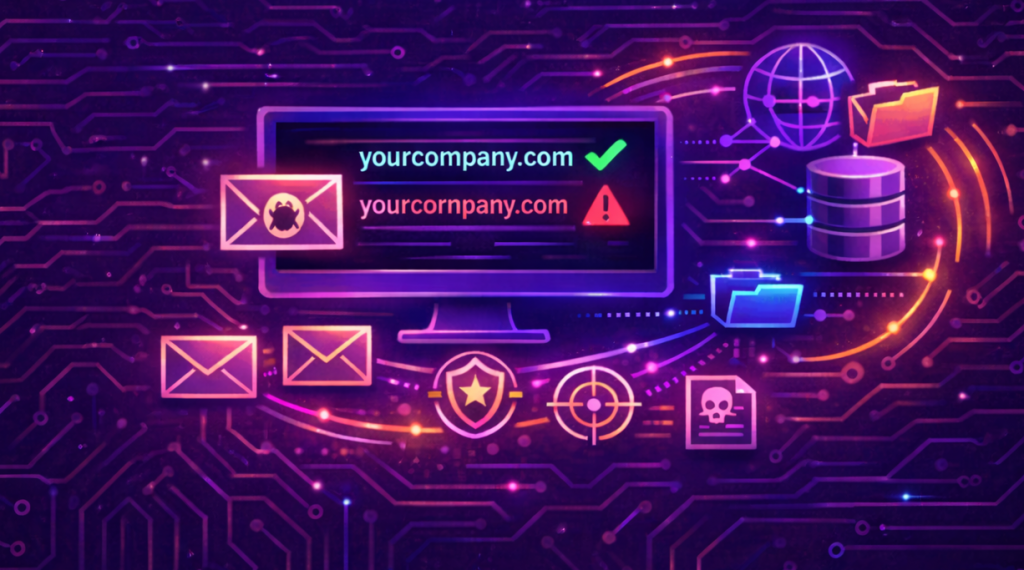 One of the most common techniques used in phishing and initial access campaigns is the creation of domains that closely resemble legitimate ones. Attackers exploit typosquatting, homograph attacks, and brand impersonation to deceive users and steal credentials.